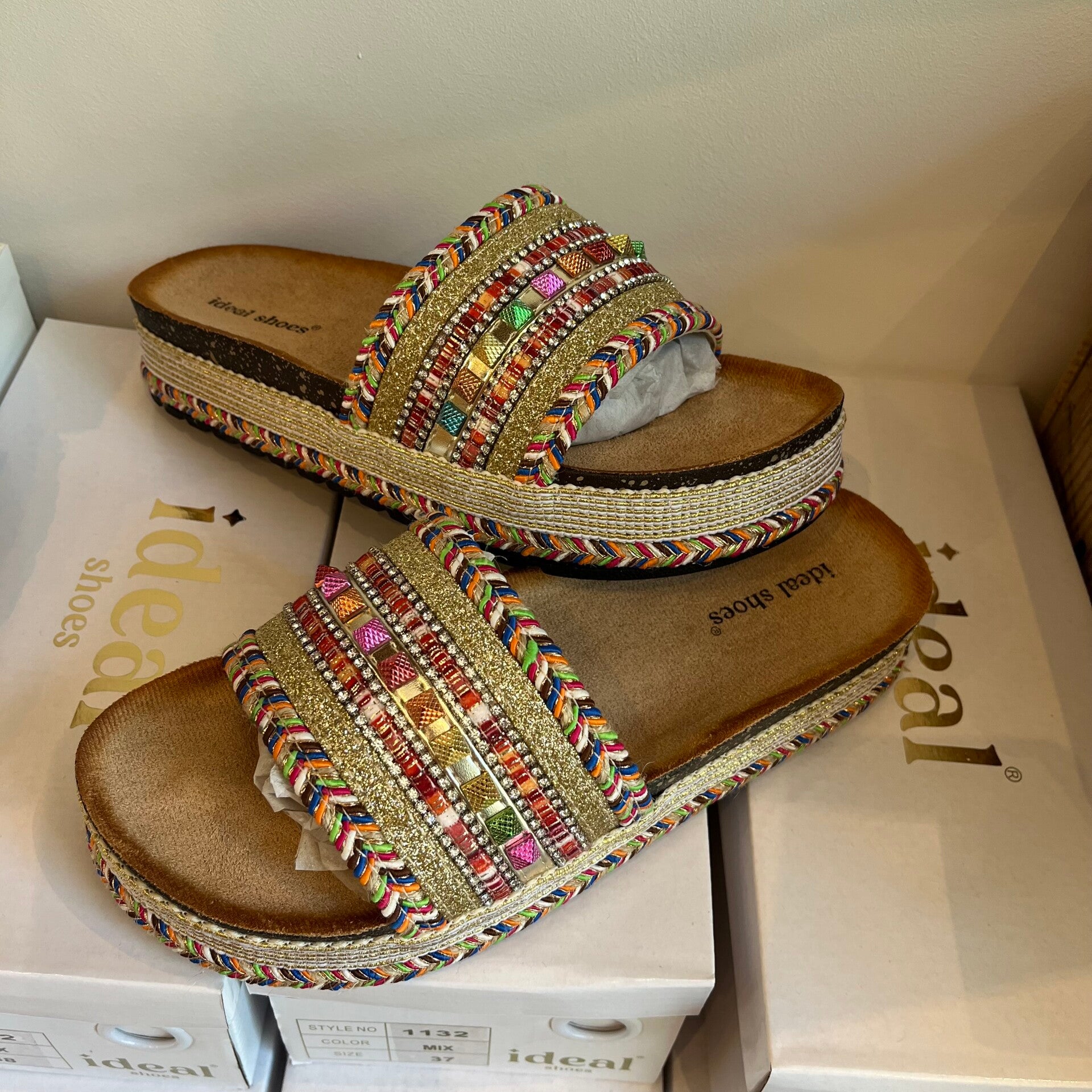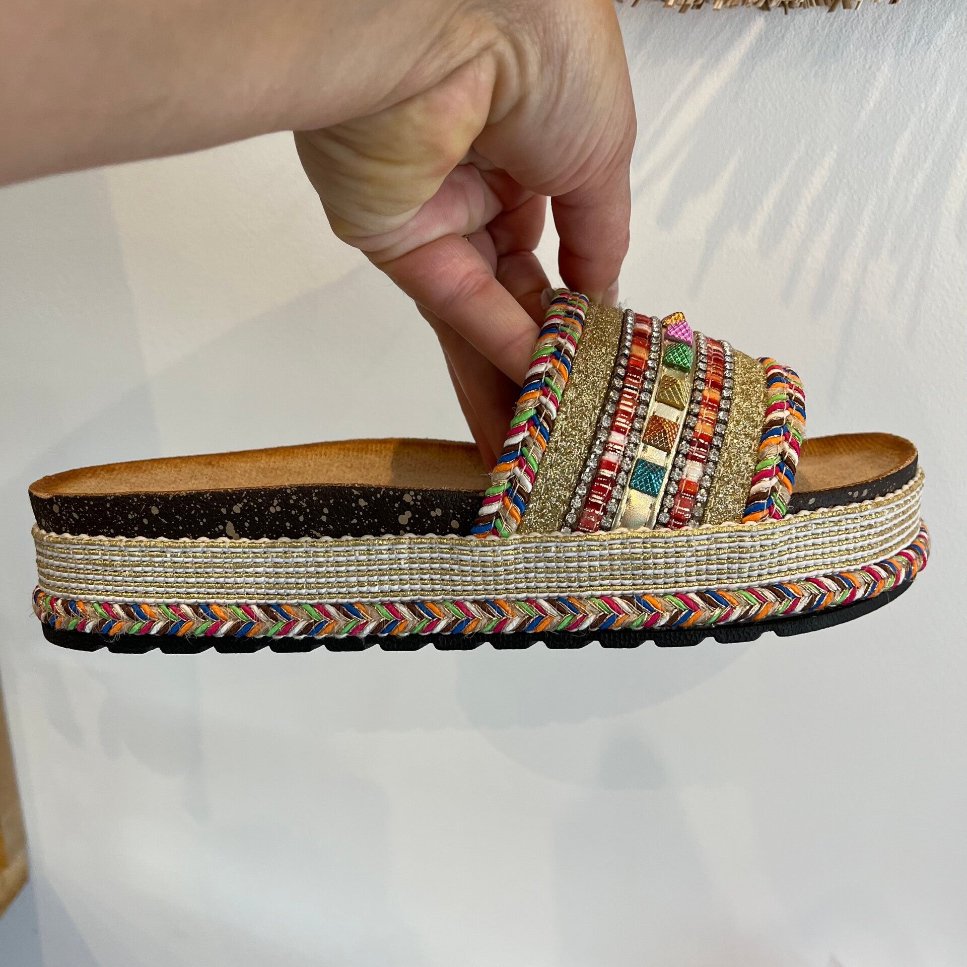Jolie mule compensées tressées avec perles et strass magnifique pour cet été