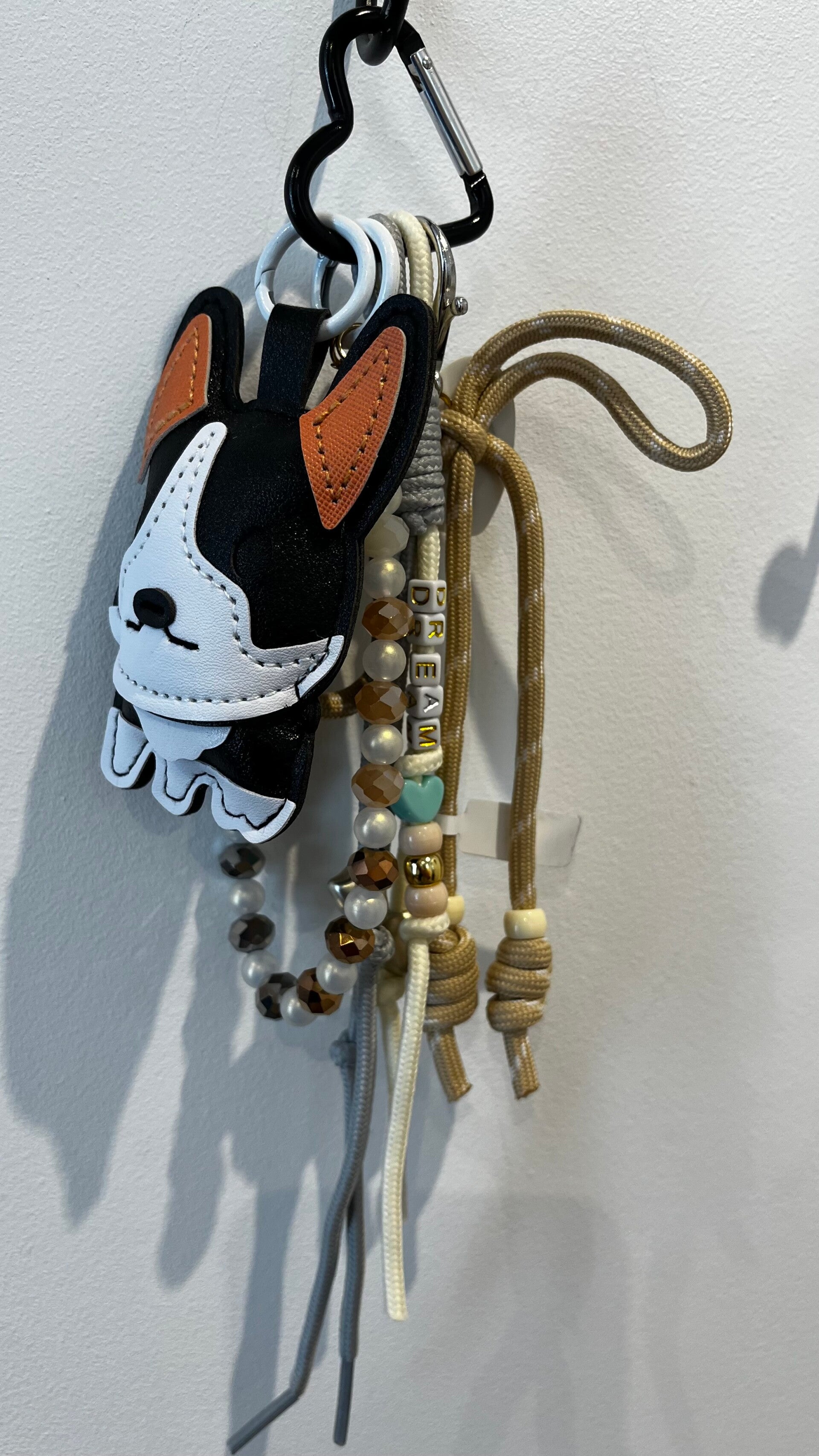 Magnifique porte clé chien avec dragone , lacets, breloque