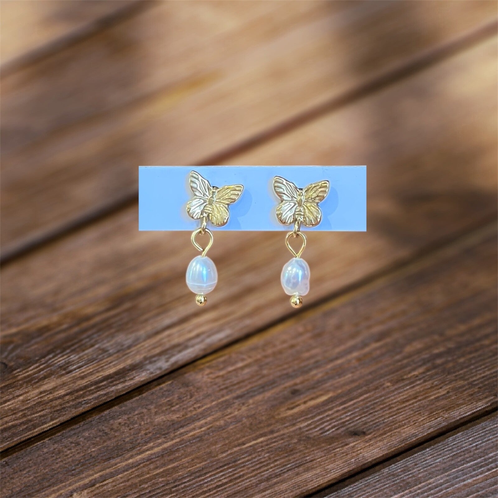 Jolie boucle d'oreille en acier doré avec perle