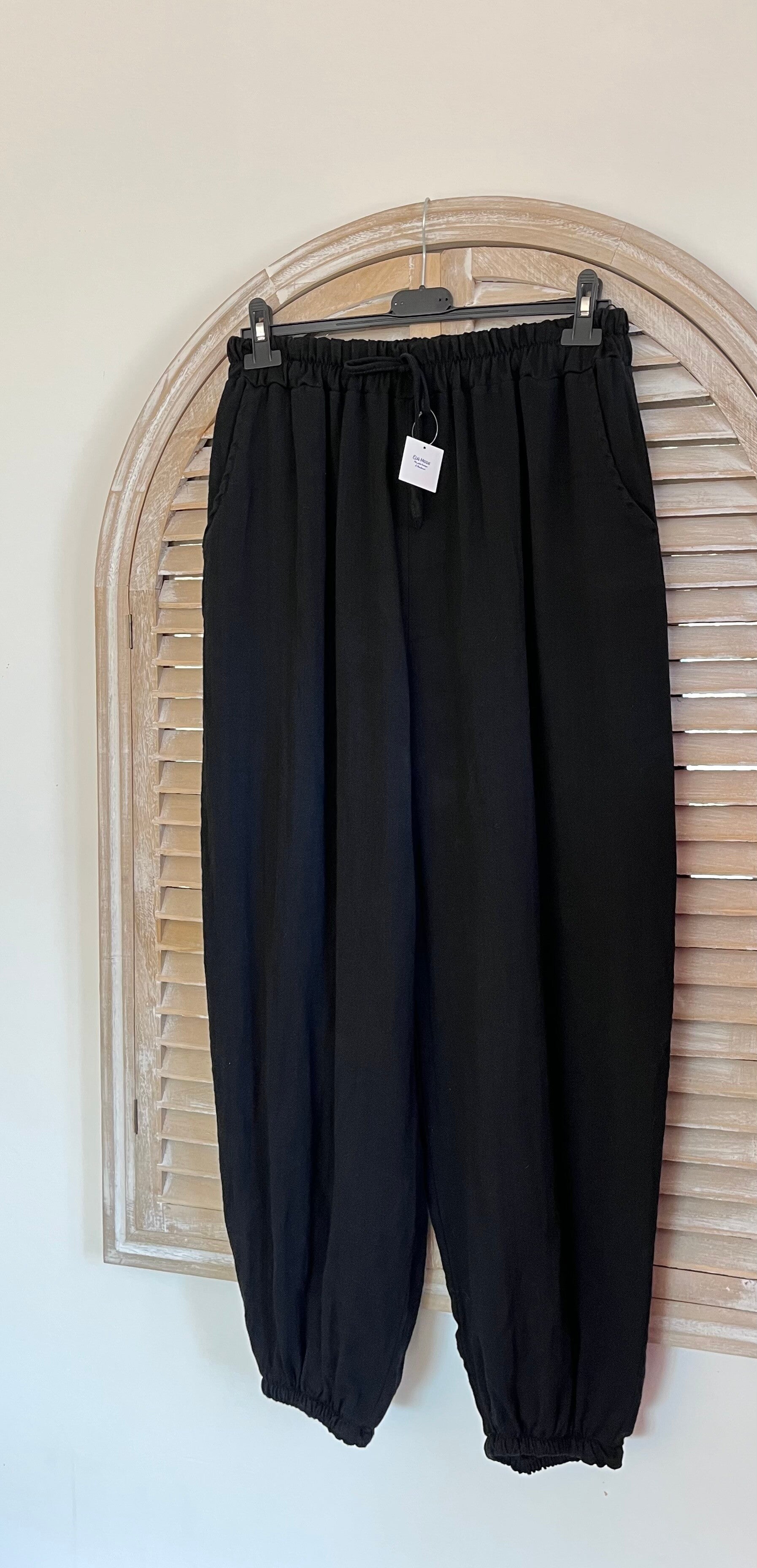 Pantalon noir effet ballon élastique à la cheville , poches , taille élastique cordon