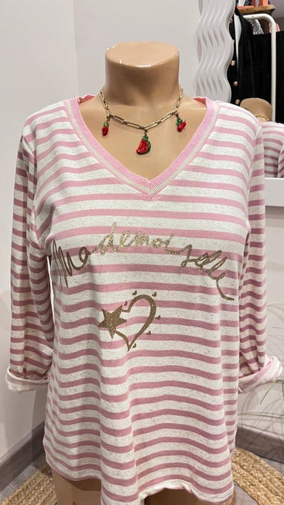Pull rayé rose/parme