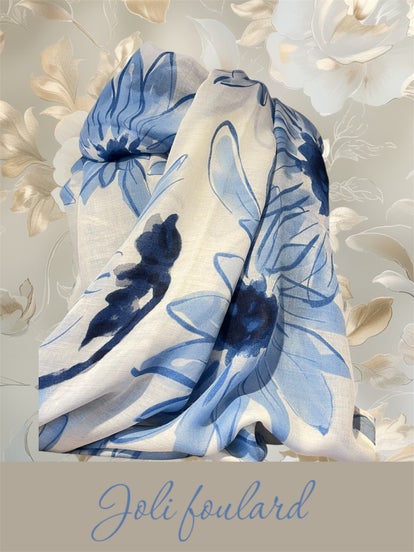 Blouse bleu et blanche fleurie en coton